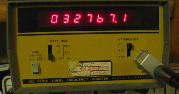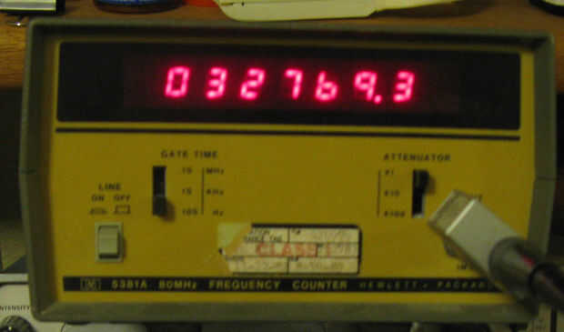 Por cierto, si tienes un contador de impulsos, puede hacer ACLK en P1.0 con un simple programa (adjunto abajo) y comprobar directamente la frecuencia del cristal en la Junta. Utilicé esta técnica para observar los cambios en mi Launchpad / configuración de cristal. Encontré que la opción recomendada 12 pF (XCAP_3) era un poco demasiado C_load. Ver las diferentes fotos para ver los resultados de los diferentes ajustes de XCAP. Te preguntarás sobre la calibración de mi contador. Me siento muy cómodo que sea correcta, porque era capaz de alcanzar una configuración de 32.766 Hz en mi Junta de proyecto / combinación de cristal. Con esta configuración, observé la 1 pérdida segundo cada 4,55 horas se muestra en la tabla anterior. Cuando optimizado para C_load (es decir, observado freq = 32.768 Hz), el reloj estaba en el dinero.