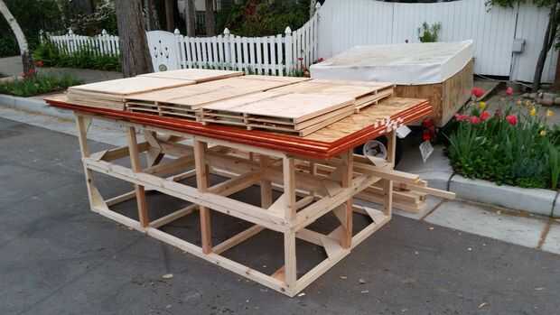 La estructura de madera fue construida con marco de 2 x 2 construcción y láminas de madera contrachapada. La estructura tiene cuatro secciones principales: