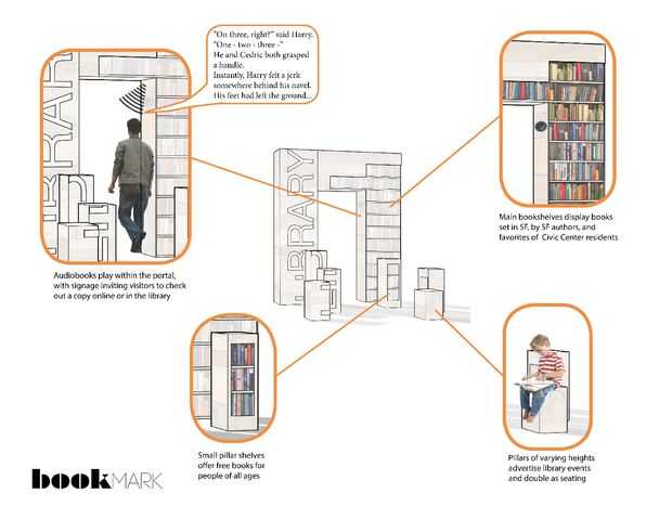 De dos días de compromiso que estaban abiertos a la opinión pública, hemos escuchado de los residentes del vecindario y de los trabajadores que les gustara la idea de una extensión de la biblioteca en la calle del mercado. Al hablar con nuestro capitán de diseño, el Exploratorium, trabajamos a través de ideas de construcción; sugiere estabilizar las librerías añadiendo una plataforma en la base y aparejo tipo los cables en caso de intento de empuje sobre o fuertes vientos.