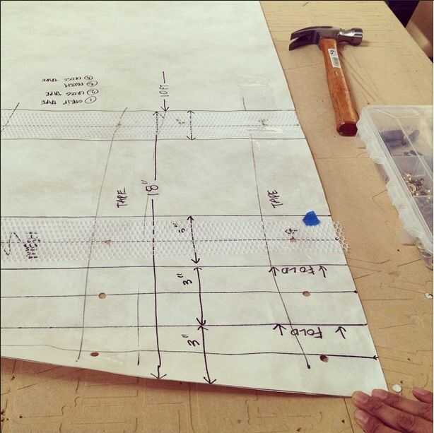 Tiras de madera , en lugares donde los paneles de Tyvek forman el borde interior de la cabina, reforzar el paso anterior con la adición de un panel de madera antes de plegar el Tyvek. Haga agujeros en la madera en lugares marcados ojal y ojal Tyvek paneles después de taladrar la madera. Fijar Tyvek protegidos por un ojal y listones de madera con 3/16" grilletes para evitar desgarro del Tyvek debido a la conexión con el bloque de hormigón a través de cables de SS.