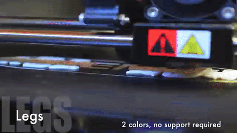 Antebrazos y piernas contienen 2 colores en cada pieza. Para lograrlo en una extrusora solo impresora 3D, simplemente pausa de impresión (manualmente o a través de código de G) en la última capa del color 1, luego carga el filamento del 2 º color y reanudar la impresión.