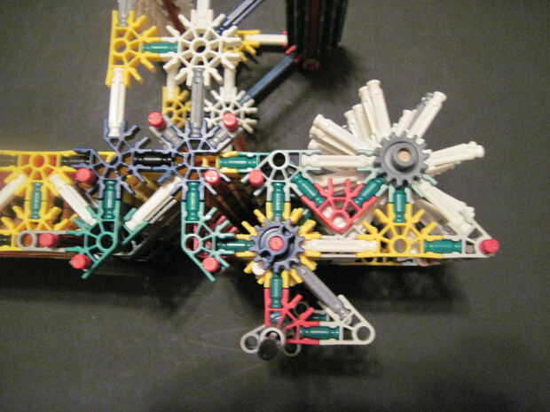 Imagen 22: En el otro lado, añadir conectores grises y pequeños engranajes.