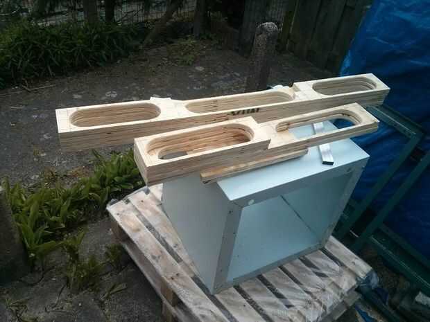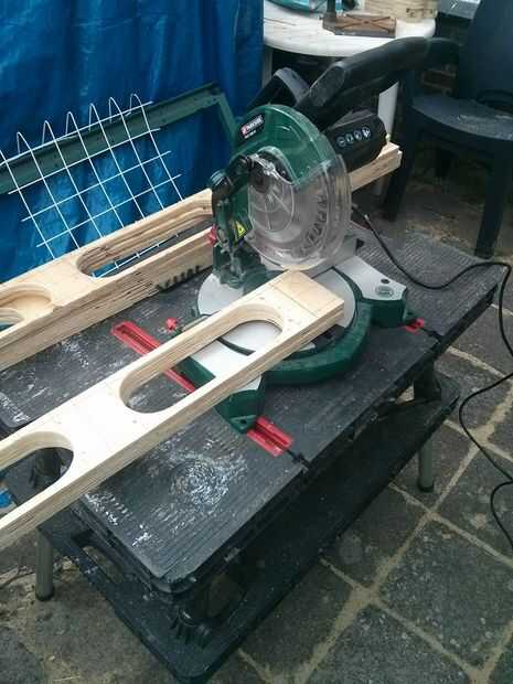 Para cortar las vigas trabajé desde un lado de la pieza sobrante hacia el otro extremo. Por que digo mide una viga, taladrar todos los agujeros, redondeadas en el interior los bordes, luego corta la viga aparte de la pieza principal, y sólo entonces hizo medir otra vez para la siguiente pieza (manteniendo las medidas que no cambian para ahorrar tiempo obviamente).