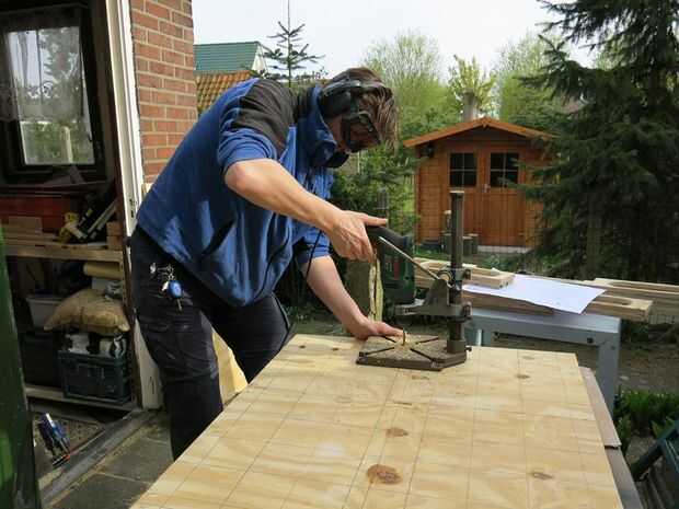 La parte superior de la mesa de trabajo necesita agujeros del perro de banco, así que aquí tenía que medir y perforarlos. Pasar tanto tiempo de medición puede evitar. Mejor sus medidas, mejor los agujeros que se alinean.