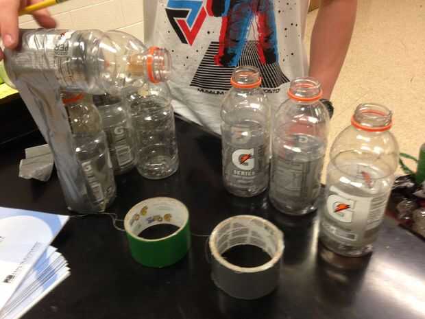 Primero tuvimos que ir alrededor de nuestra escuela y recoger un montón de cinta reciclada, 7 botellas de Gatorade, 1 Arizona botellas y 2 botellas de agua inteligente.