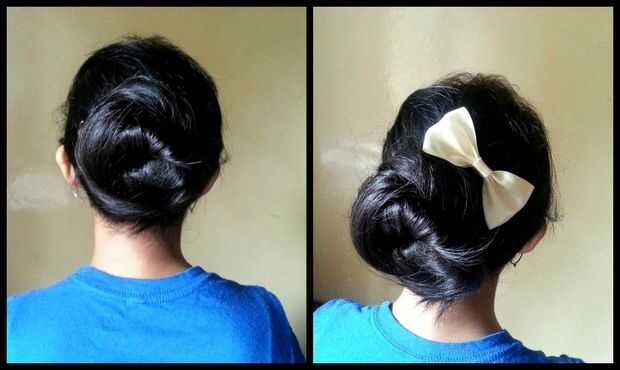 envolver cuidadosamente la cola de caballo trenzado alrededor de la base para formar un bollo,