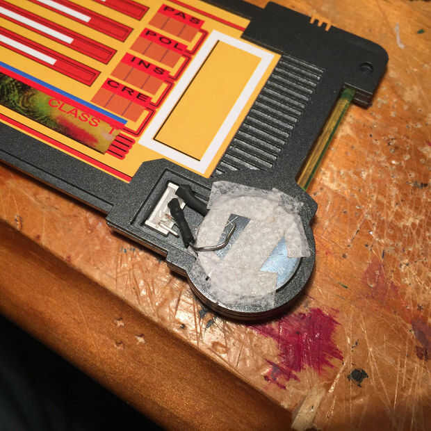 Soldado un cable a los primeros dos alfileres que son positivos y negativos para la parte de superior dirigido. luego se pelaron los cables para exponer el alambre para hacer contacto con la batería de botón. El alambre inferior solo se pone abajo y la batería se coloca ontop de él, el segundo cable para hacer el circuito completo se coloca en la parte superior pero doblado ligeramente hasta por lo que no hará hasta que se agrega la presión de contacto.