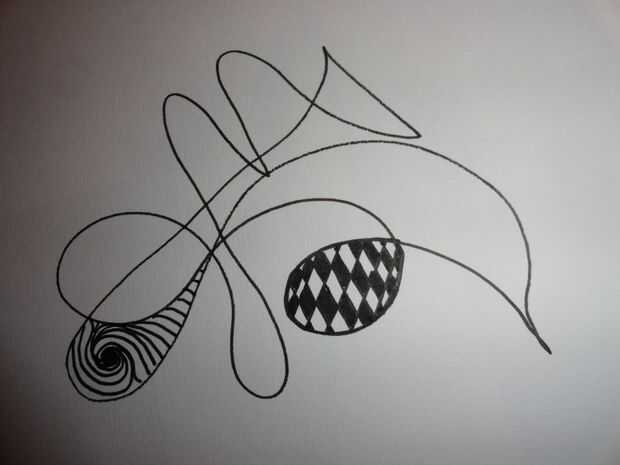Empecé haciendo un círculo sólido. Entonces empecé a partir el diseño en la parte superior del círculo y despedazar abajo a la derecha de manera curvey conectarse del lado del diseño. Entonces repetí esto desde la parte inferior del círculo a la izquierda del círculo y tocar la parte superior de la línea en el diseño. Seguí a hacerlo hasta que se llenó. Puesto que todavía había algunos izquierda de espacio abierto, he añadido más líneas para llenar para arriba.