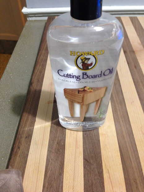 Para proporcionar protección utilicé un "corte tablero aceite" estándar. Simplemente frota en con un pedazo de toalla de papel. He comprado este aceite especial en línea pero ya que he visto de venta en Home Depot para como 10 dólares. Es importante ir con un aceite que es comestible y no tóxico. Utilizando poliuretano o algo similar será sin duda la escama de productos químicos en su bebida que no sólo afectan el sabor, sino también tienen efectos perjudiciales para la salud. Aceites seguros alimentos para tablas o ensaladeras están claramente marcados.