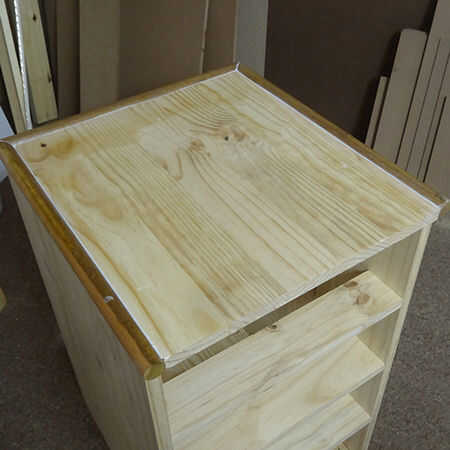 7. Atornille la tapa en su lugar, permitiendo un espacio a los lados y hacia atrás para el montaje de la envolvente de la espiga. Si usted prefiere dejar que esto usted puede tener la parte superior cortar para caber, o más grande si quieres un saliente en el frente y lados. Asegure con tornillos de 40mm a través del apoyo y en la parte inferior de la parte superior.