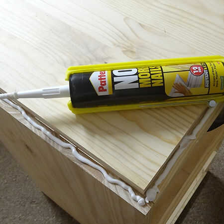 10. también utilicé pegamento Pattex No más clavos (o sellador acrílico) para rellenar el espacio alrededor del borde del marco de la espiga y, arriba y relleno de madera en las esquinas de la espiga.