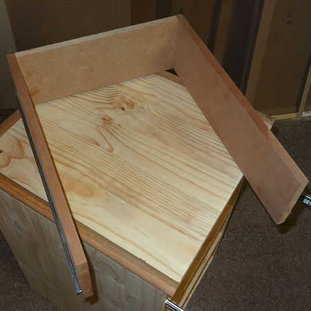 10. otra vez, porque estoy utilizando recortes y sobrantes, la base está hecha de aglomerado de 16mm. Puede utilizar cualquier placa para la base. Sin embargo, si desea para grapas o clavos madera prensada o masonite debajo del cajón utilice a un espaciador de 6mm para levantar el cajón al montar en la gaveta.