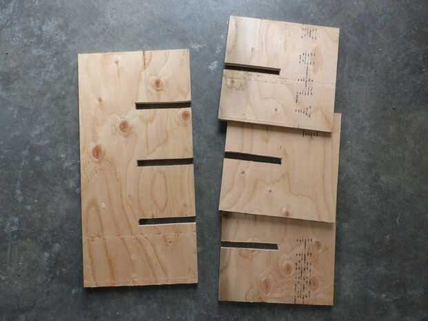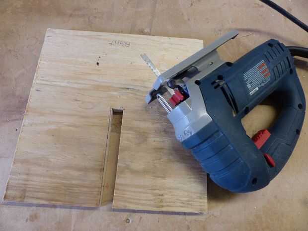 Como se ve en la foto 1 y 2, corte tres "cortes" espaciados uniformemente sobre el vertical y en medio de las repisas con una sierra de calar. Se trataba de 5/8" por 5 1/2".