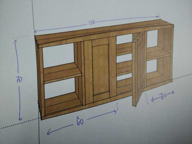 La lista de materiales incluye 2 x 4" madera, #10 galletas, tornillos, clavos, pegamento y unas bisagras pequeñas