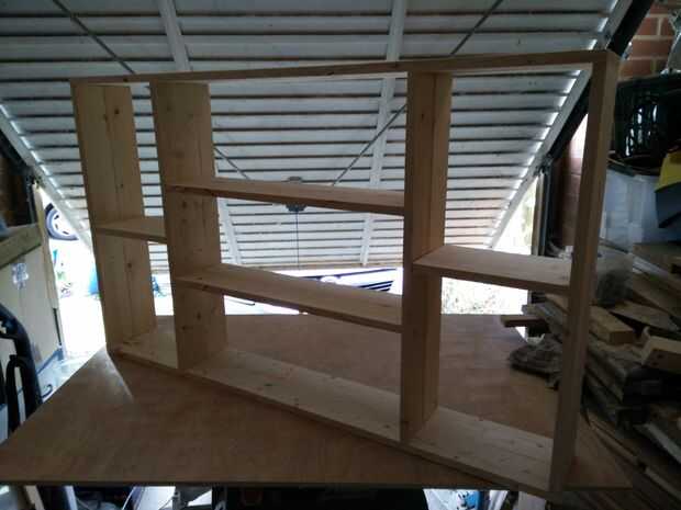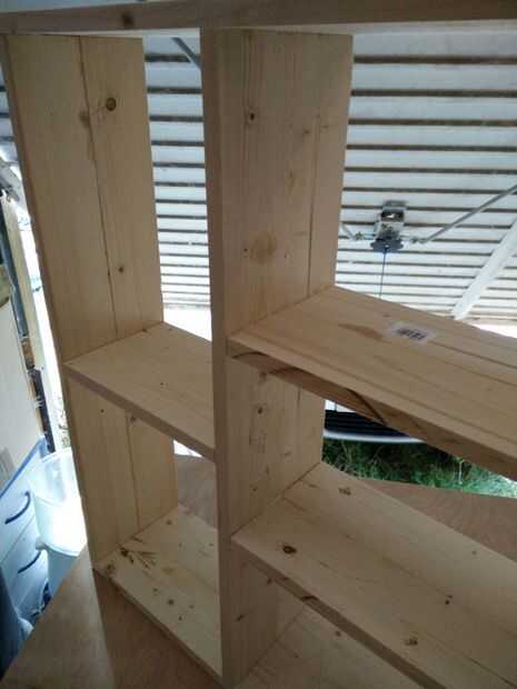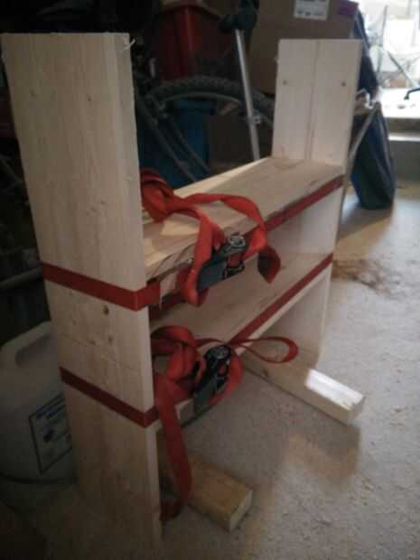 Las bandas rojas son en dos montantes/interior sheves (sección central) que se han unido con galletas.