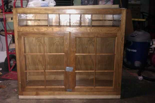 Quité las puertas y vidrio de ellos, lija la madera manchada por lo que puedo pintar más tarde.