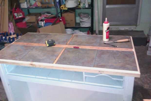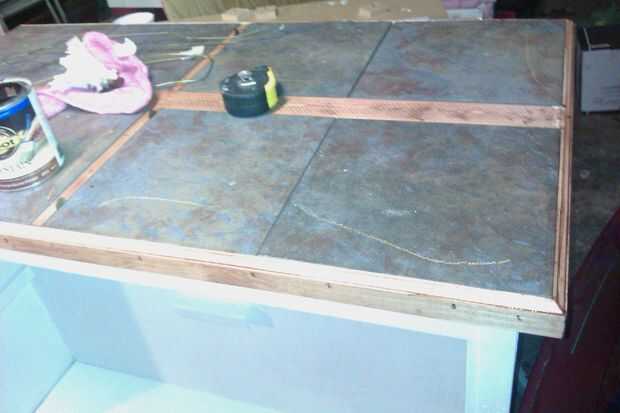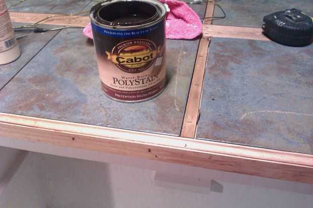 bien, sé im supuesta que utiliza la gota, pero puesto que esto no va a ser grande pensé que importaría un montón. líquido clavos a la Junta y dividirlas usando una pieza delgada de madera teñido y sellado. envían algunas placas de 1 x 2 para hacer la guarnición alrededor del borde de la baldosa. inglete las esquinas, pegados y viró a hacia los bordes. corrió alguna mancha y sellador alrededor de los bordes.
