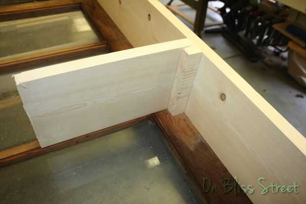 Coloqué las piezas laterales a la ventana para marcar donde coloco los soportes del estante. Quería a la línea para arriba perfectamente con la madera entre los paneles de vidrio por lo que cuando la puerta estaba cerrada, los estantes quedaría cubiertos por la madera de la ventana.