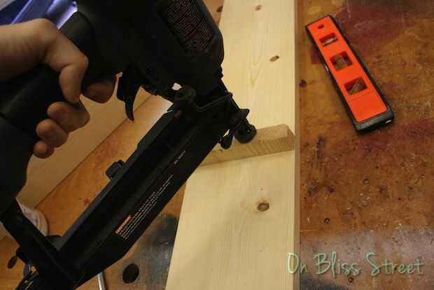 Fije los soportes para los estantes con pegamento de madera. Asegúrese de que estén nivelados y fijación con clavos del clavito 2.