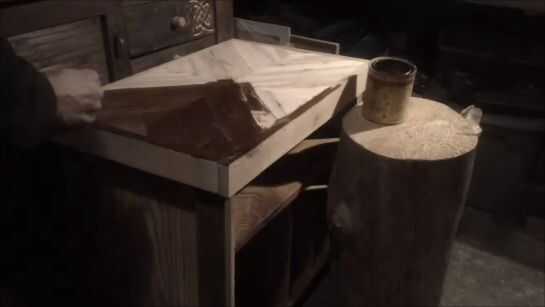 Apartar la arpillera piezas y había manchado todo el gabinete. Usé diferentes tipos de madera en este proyecto, que la mancha realmente trajo todos juntos y le dio un aspecto uniforme. Después de quince minutos o menos, I limpiar la mancha y lo deje reposar toda la noche.