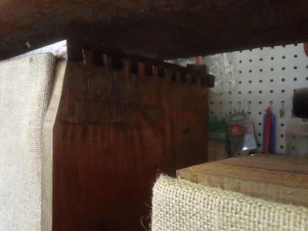 Al día siguiente puede volver y limpie todo con un paño húmedo. Ahora todo lo que tienes que hacer es poner en sus pedazos de arpillera para cubrir los altavoces. Mina entra en su lugar muy cómodo, pero me decidí a tocar en un par de clavos para mantenerlos allí.