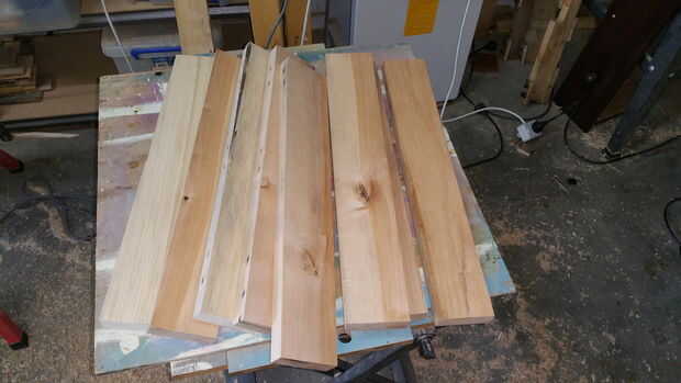 Utilicé tornillos de agujero de bolsillo para unir estos pero podría usar taquetes o empalmes del regazo o en el tornillo de los lados. Si considera que atornillar por los lados donde el tornillo se verá de y ajustar el diseño por consiguiente como puede ocultar los tornillos con los tablones a los lados. Trate de montar en una superficie plana y compruebe que las piezas de madera no son demasiado deformadas. Desea una buena superficie plana por la parte inferior para wont roca en el piso.