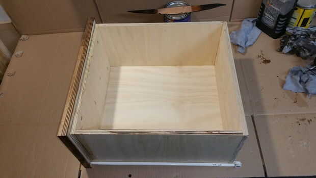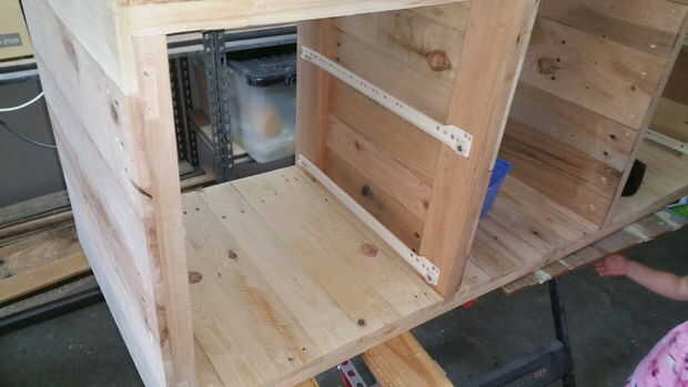 Utilizando madera contrachapada de 12 m m construí 4 cajones y una cara que puede encolar la madera de palet.