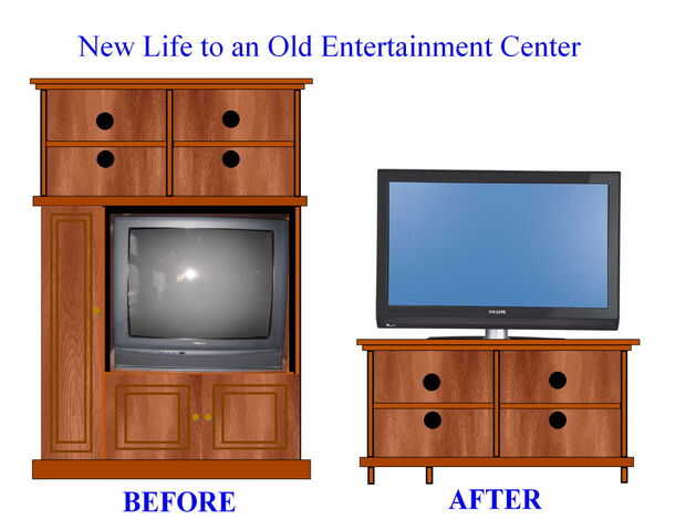 Parecía un crimen a tener que tirar un centro de entretenimiento perfectamente al actualizar a una nueva televisión de alta definición. Así que en lugar de gastar un montón de dinero en un nuevo soporte de la TV me puse a buscar opciones. Tomar una mirada cercana en el centro de entretenimiento existentes reveló que la mitad superior tenía potencial para ser un soporte para la nueva televisión de alta definición.