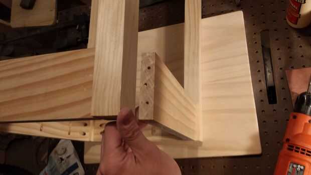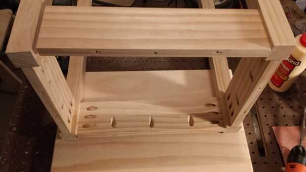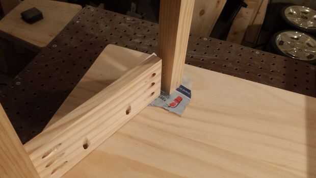 Conectar uno 1 "x"4 x 10" a uno de 2" x 2" x 24" Junta. Para ello, la línea hasta el final de la Junta de 1 "x 4" x 10" placa con el centro del final de la 2" x 2" x 24". Utilice una broca pequeña en los agujeros de ocultación para marcar puntos para perforar agujeros. Una vez marcados los agujeros, sacar el 1 "x 4" x 10 "del tablero y perfore agujeros para los tornillos que voy a entrar en los agujeros de bolsada. Vuelva a colocar pegamento en el final de la 1 "x 4" x 10 "del tablero y atorníllelo en el 2" x 2 "x 24" Junta. Repita este proceso para colocar otro tablero 2 "x 2" x 24" junta al otro extremo de la 1" x 4" x 10" y apartar a esta pieza. Repita los mismos pasos para crear una segunda obra idéntica de dos 2 "x 2" x 24" tableros conectados a un 1" x 4 "x 10" Junta. Luego coloque las tablas de 1 "x 4" x 14" tablero de 90 grados en relación con el 1" x 4" x 10". Asegúrese de que el bolsillo agujeros perforados perpendicular a la veta de la Junta estén todos hacia la misma dirección (hacia la parte superior, se utilizarán para sujetar la tapa de tabla.) Asegúrese de utilizar el pegamento en todas las uniones, fortalecerá significativamente la tabla.