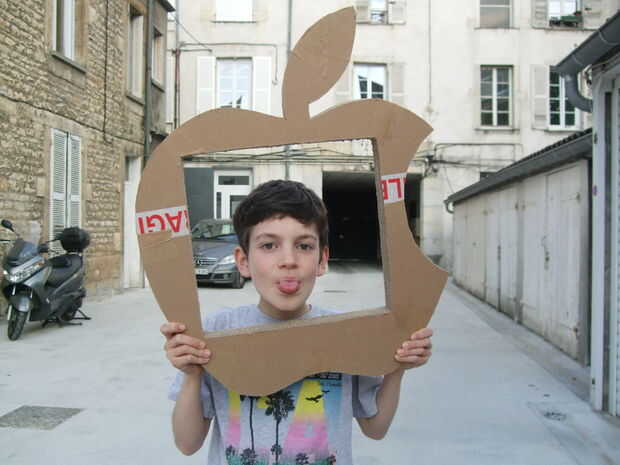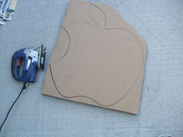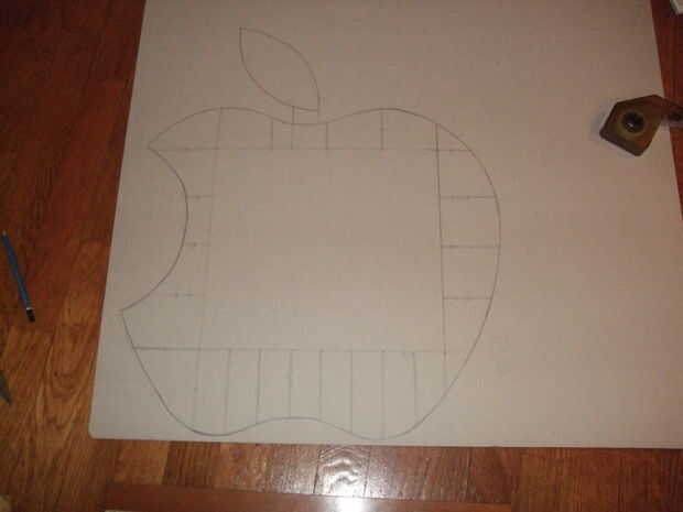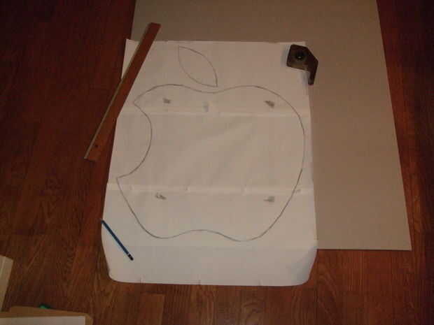 Mediante la pantalla de mi Imac grande, trazó la insignia de Apple en un pedazo grande de papel y lo pongo en un cartón rígido delgado. Éste era el patrón de mis muebles.