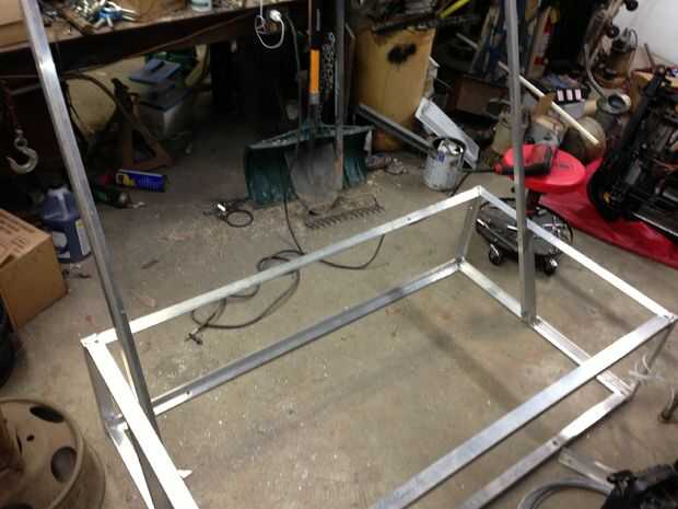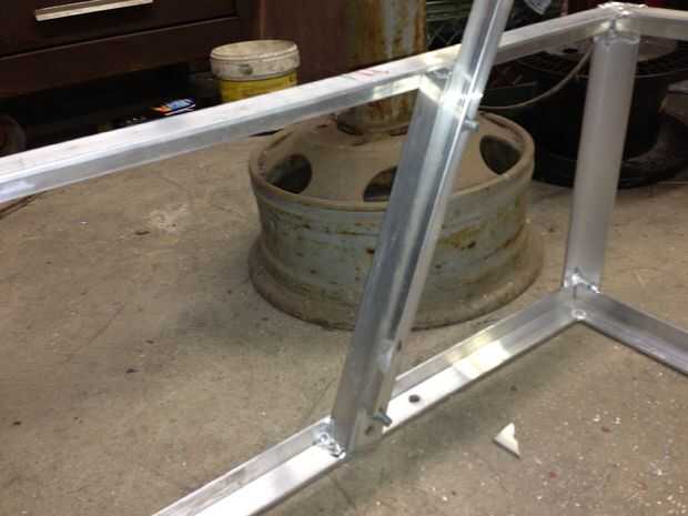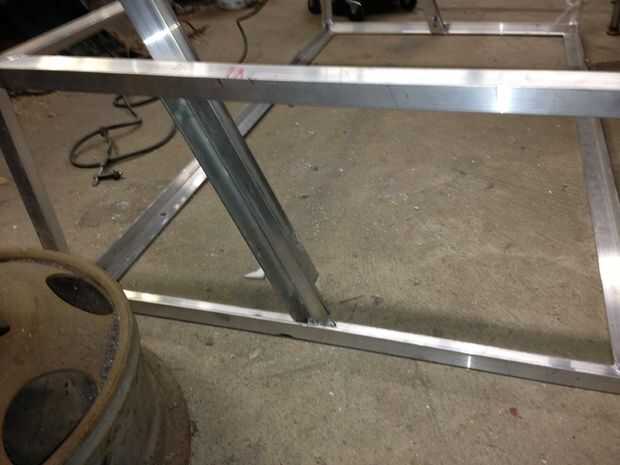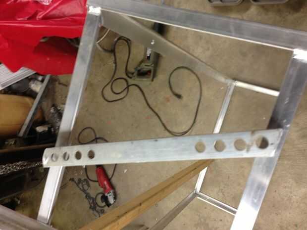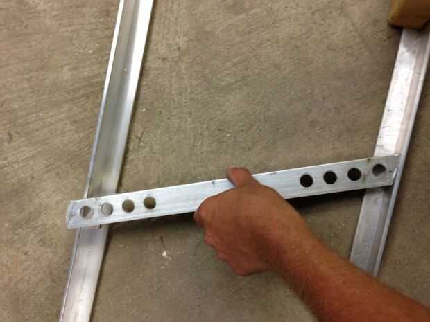 después de que piezas se sueldan con autógena en ambos lados. Sujeta una pieza de aluminio ángulo largo así que podría perforar correctamente. después de eso agregada les porque quiero ser extraíble para el almacenamiento de respaldo. Estos serán para el respaldo