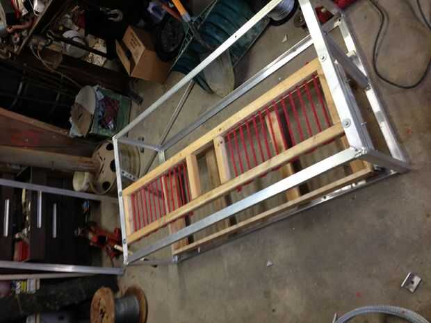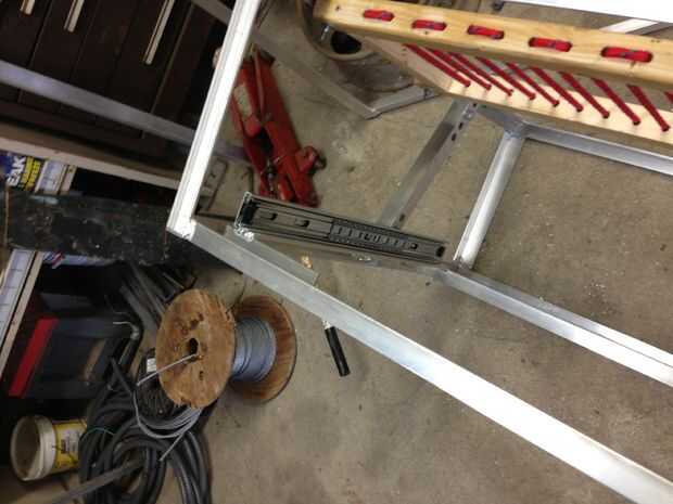 Básicamente todo lo hice fue soldar unas piezas en la parte inferior para soportar los rieles para los cajones. A los rieles del cajón en primer lugar, luego a un pedazo de ángulo de aluminio y soldado con autógena todo abajo así que tendría el espaciado exacto y no debe medir nada. el cajón encajan perfectamente pero desliza un poco áspero porque su tan amplia, probablemente sugeriría poner una diapositiva en el centro. pero no lo han hecho