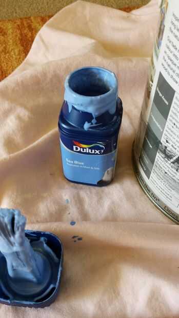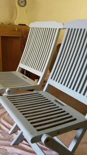 Dos sillas eran tonos de azul y Rosa dos. Luego añadí verde a la crema a la pintura la tabla.