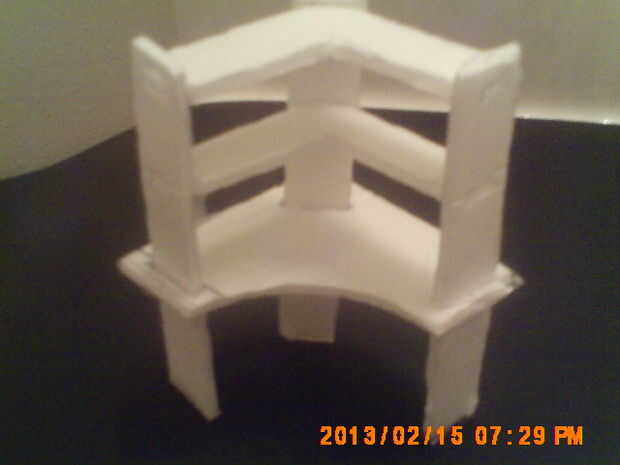 Este fue el proyecto más difícil. Tipo de no tener cualquier medida para ir por sí, tuvo que construir éste por el asiento de su pamts. Como dije antes el otro deask primero que tipo de figire a hacer este. Tiene algunas piezas repetitivas, pero los dos estantes eran el verdadero desafío. Recomendamos hacer lo soportes de pie Lond primero, el escritorio sección siguiente y los estantes de última. La espuma de poliestireno que estaba usando estaba haciendo real difícil de trabajar, casi había que empezar de cero. Una pequeña cinta salvó el día.