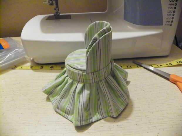 del cojín para el asiento del pegamento y luego pegar la parte delantera de la espalda en la parte posterior de la espalda, sé suena gracioso.  Repita que este proceso con la otra seta puede para la otra silla.