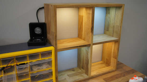 Como se puede ver que el blanco fresco se ve terrible, blanco cálido es el camino a seguir! Mina había colocada en la esquina de mi mesa de trabajo en el garaje. ¿Ahora lo que quieras?