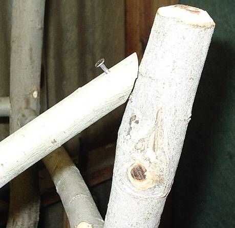 Localizar los refuerzos llegan de los inferiores de lado, en las piernas. Pretaladre y clave con clavos. Estos bebé mantener apretado! Si desea eliminarlos, deberás dividir la madera hacia fuera alrededor de ellos, porque no saldrá sin romper algo.