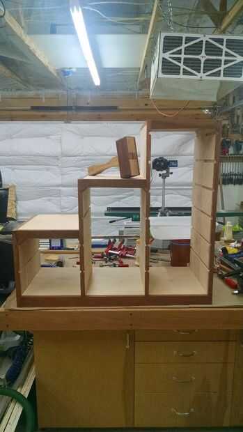 Uno de los pasos más importantes en el proceso de construcción es la fase de montaje seco. Particularmente cuando un proyecto implica un intrincado procedimiento de pegamento como la unidad de información en niveles, el paso de montaje seco ofrece una oportunidad para exponer peligros potenciales que pueden existir pero no totalmente obvio previamente. Cualquier obstáculos que encuentres durante el proceso de montaje seco pueden ser abordados para garantizar un más fácil proceso de pegamento hasta final. También es un buen momento para medir y cortar para adaptarse a los bordes de los dos divisores verticales mediados en unidades más pequeñas. Estos se extienden detrás del riel frontal superior hasta el estante superior para que la moldura tiene que dejar en la parte inferior de que el ferrocarril por lo que son en realidad más cortos que los paneles se debido a la proyección de la baranda superior.