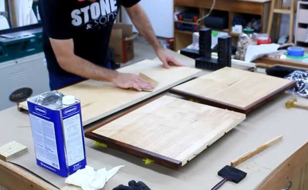 Como lijado, acabado es igualmente importante para asegurar que usted está satisfecho con el producto terminado. Cualquier atajos tomados en cualquiera de estos pasos, significará un menor resultado deseable. Elegí a lijar con una lija de grano muy fino (400 grano) entre las capas y he aplicado un total de tres capas a cada pieza. Decidí aplicar acabado antes del montaje aunque se podría aplicar acabado después de que las unidades son ensambladas. Si elige el acabado de las piezas, asegúrese de no aplicar acabado en las superficies de cola para garantizar la mejor posible enlace.