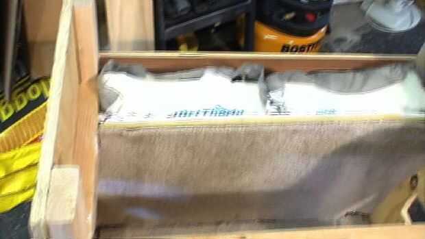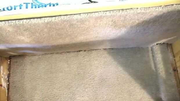 Poner el aislante entre la pared frontal y la pared inclinada. A continuación grapa acolchado en el interior las paredes y el piso inferior. A continuación grapa alfombra sobre todo el relleno. Ahora corte una pieza de madera contrachapada 34 1/2" por 22 1/2" y monte abajo en la pared frontal y las 2 "x 4". Esta será la plataforma para almacenar cosas. Ahora cortar madera contrachapada otra 36" por 22" y montarlo en la parte superior de las paredes laterales. Se trata de la parte superior de la máquina. Una vez que han montado la caja entonces poner sobre el lado y montar las 4 ruedas en la parte inferior de la caja. Ahora que terminaste con la caja.