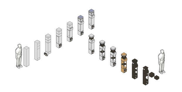 Muebles deben tener la flexibilidad y la versatilidad de un juguete de construcción buena. Apilamientos, para combinar y volver a configurar elementos discretos para hacer almacenamiento para cualquier espacio serían ahorrar dinero y reducir los resi