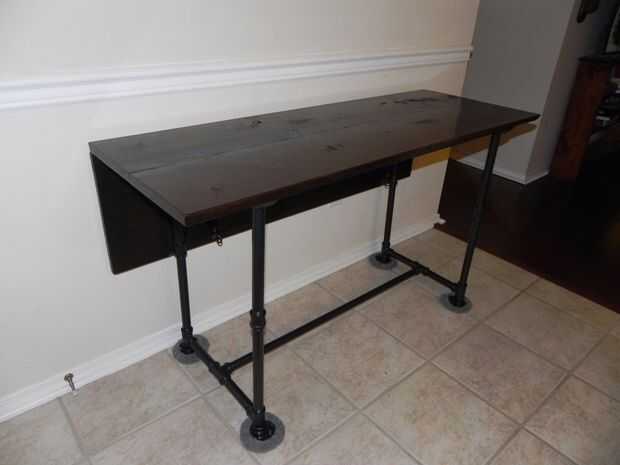 Para equipar mi comedor y salas de estar, me decidí a construir algunas de mis propias piezas para cerrar la brecha entre rústico y temprano industrial. Decidí ir con tableros de madera macizas y tubo de gas de hierro negro para las piernas y el resultado ha sido bien recibido. Además de dar una sensación de desgastado al espacio, la técnica también es bastante simple en la construcción. También rindió los muebles que son fácil de desmontar y transportar. Para mantener el peso y el precio hacia abajo, también se puede ir con tubo roscado de PVC, que es más fácil trabajar con y puede ser similar a la versión de hierro pintado. Tubo de PVC
