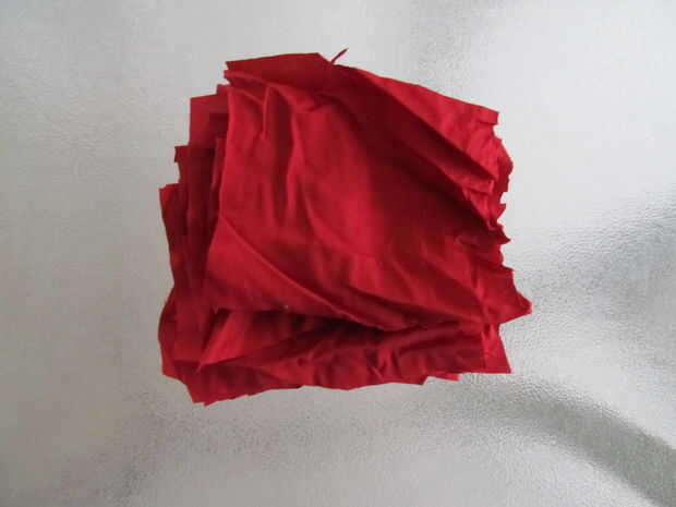 * Cortar a tu tela y rasgar su producto de papel en pequeñas tiras o en trozos. Hice unos 4" cuadrados. (Si el material no extienda suavemente sobre la superficie de la bola de sus piezas son demasiado grandes)