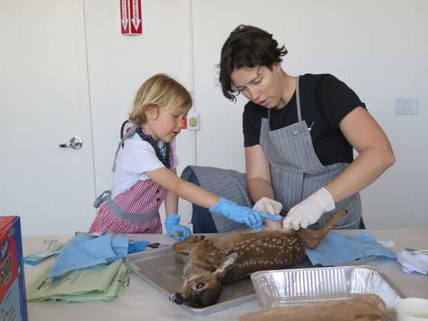 Donde estaba yo, sí, los participantes de 5 1/2 porque Christy, uno de los otros participantes trajo a su hija. Trabajo de Christy había precedido le, una pequeña preparación para el evento me aterrizó en este Instructable. Como ella piel de un cervatillo, habló a su hija un poco a través del proceso.