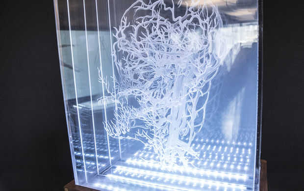 Para mi proyecto de residencia principal de muelle 9 usé acrílico refracción de luz, neopixels, impresión 3D y una serie de dibujos anatómicos para ilustrar lo que podríamos estar perdiendo cuando nos ignoran lo que ya está dentro de allí esperando.