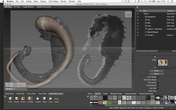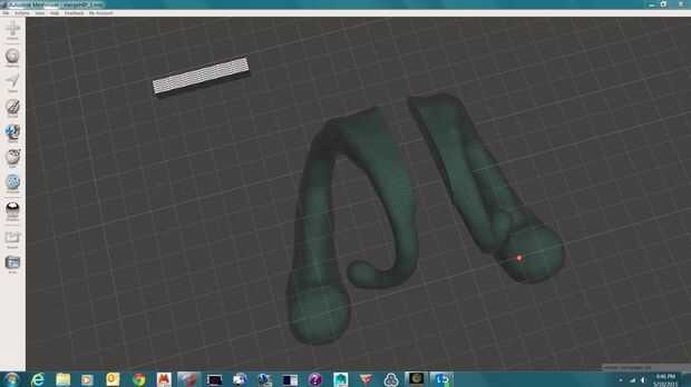 Empecé con el material de referencia visual, haciendo una malla geométrica muy básica para abarcar el hipocampo. Usé una spline básica (dibujado a lo largo de la 'columna vertebral' por así decirlo de la forma original) y un polígono base, que entonces fueron combinados en un comando de barrido para crear la superficie del modelo. Trajo este acoplamiento en Mudbox para esculpir digitalmente en más detalle. El modelo terminado fue traído en Meshmixer, espejado, y los dos lados juntos en puente (ya que el hipocampo se extiende a ambos lados de la cabeza) había decidido que quería un objeto sólido, de dos piezas que se enclavijan se unió a través de un agujero en una de las piezas de acrílico, por lo que el objeto sería uno, en lugar de ser atravesada por el acrílico transparente.