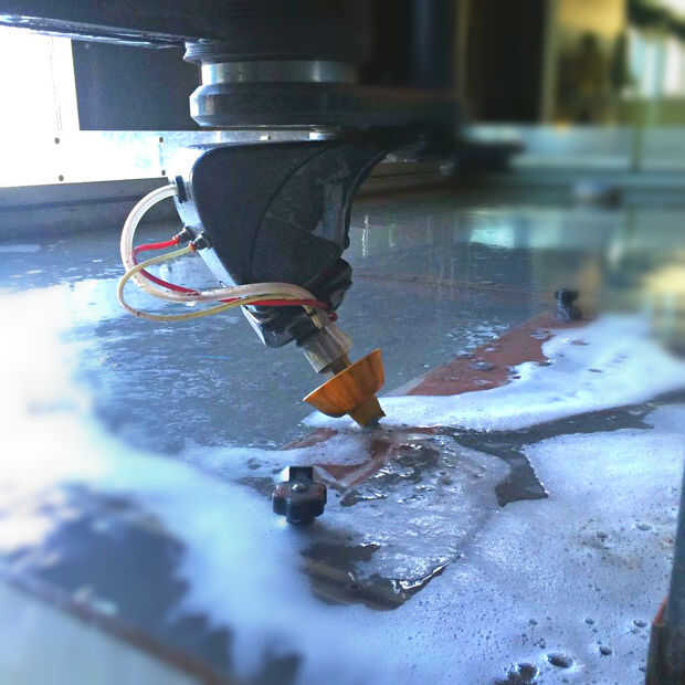 El A-Jet es una cabeza de corte multi-eje que amplía la versatilidad del corte del chorro de agua OMAX. Con un rango de corte de 0° a 60°, el A-Jet puede cortar los bordes biselados, lados angulados y buriles. Características avanzadas en el Software Intelli-MAX permiten el A-Jet compensar de forma cónica y crear formas 3D complejas.