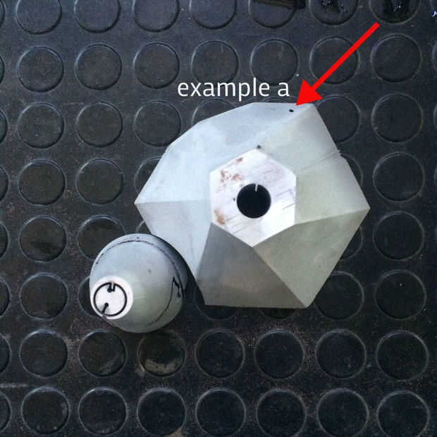 - Pierce en la iniciativa de no estar a un ángulo y podría posiblemente perforar la pieza, véase el ejemplo A