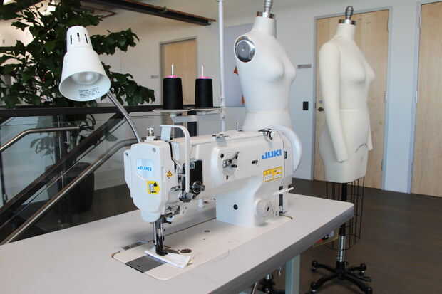 La sala también contiene una gran variedad de proyectos y suministros de costura y una estación de telón de fondo de la fotografía. .
