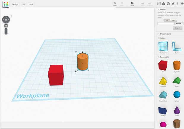 Acerca de: TinkerCAD es uno de los programas de modelado más principiantes ahi. Le dan una amplia gama de formas primitivas básicas que usted puede colocar en el entorno de modelado y la escala. Puede seleccionar dos objetos, agruparlos o utilice uno para hacer un agujero a través del otro y jugar fácilmente.